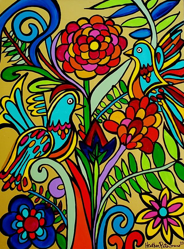 Heather Peterman is a self taught artist that creates delights in color, design, and whimsy. Her eftervescent personality flows through her art to make your heart laugh and your soul shine. Her primary focus is to create art that helps people connect with their own good energy . She does this with a holistic approach that helps bring a little balance, sanity, and positive energy to your everyday world.